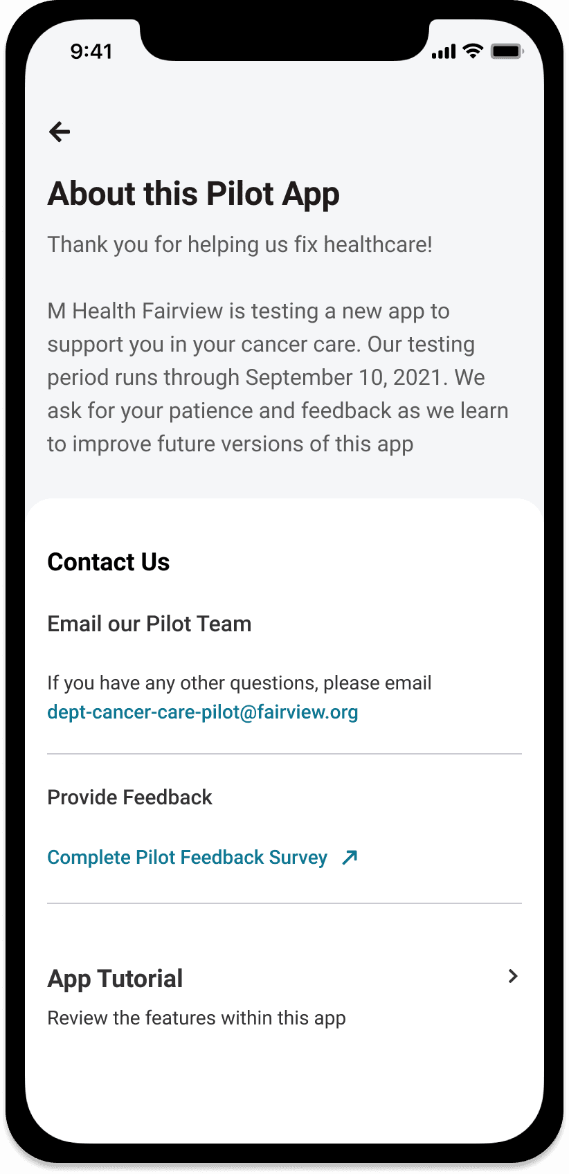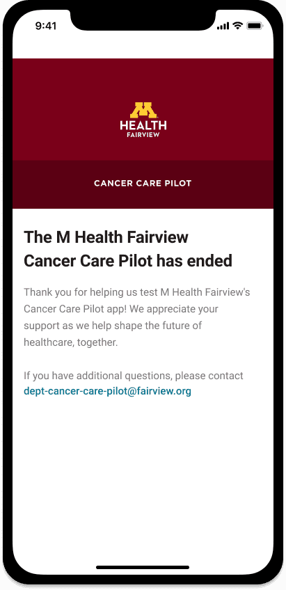 The MVP was deployed to a limited pilot group of cancer patients and caregivers as part of mHealth Fairview’s initiative.