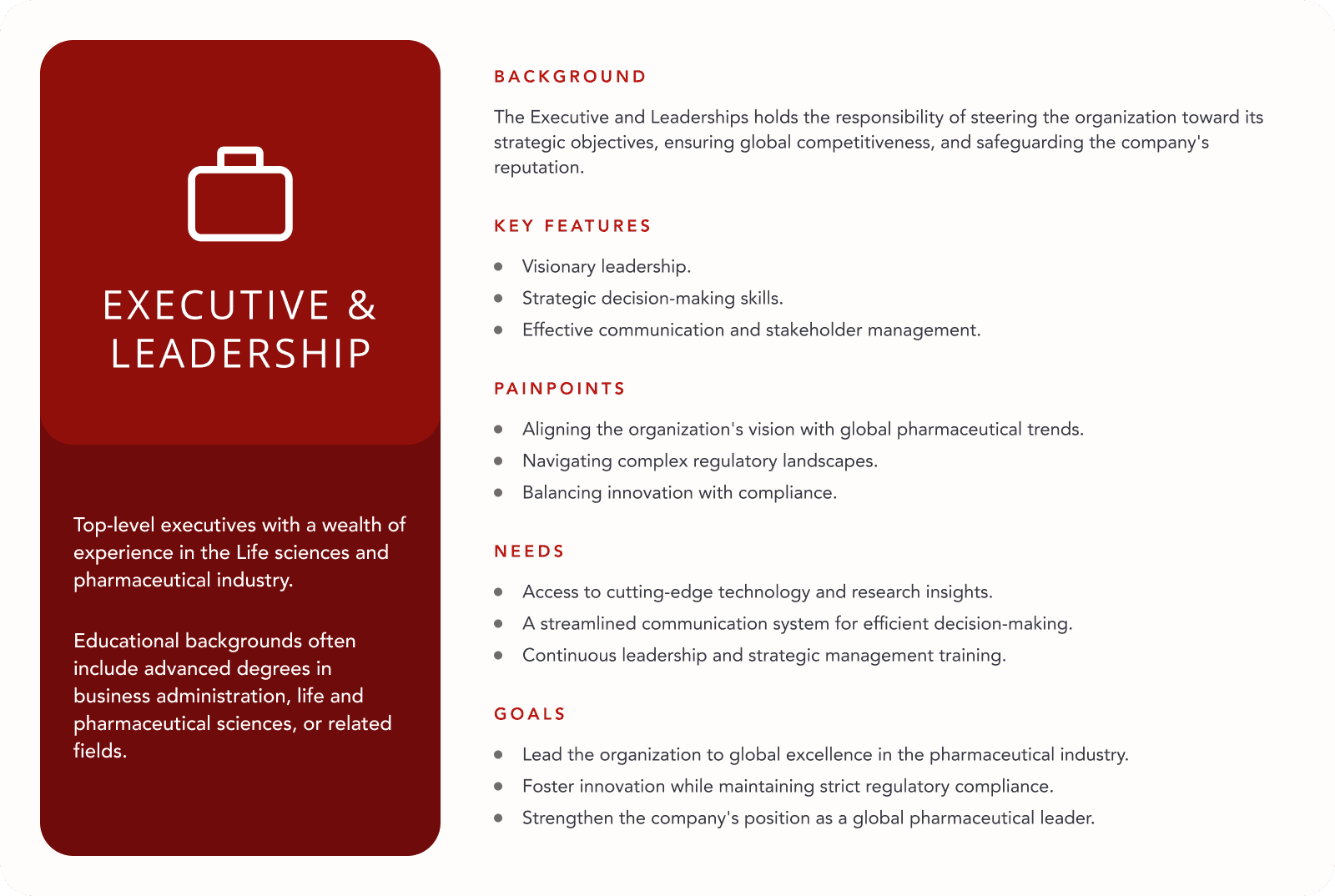 These personas shaped information architecture, dashboard structure, and feature prioritization.